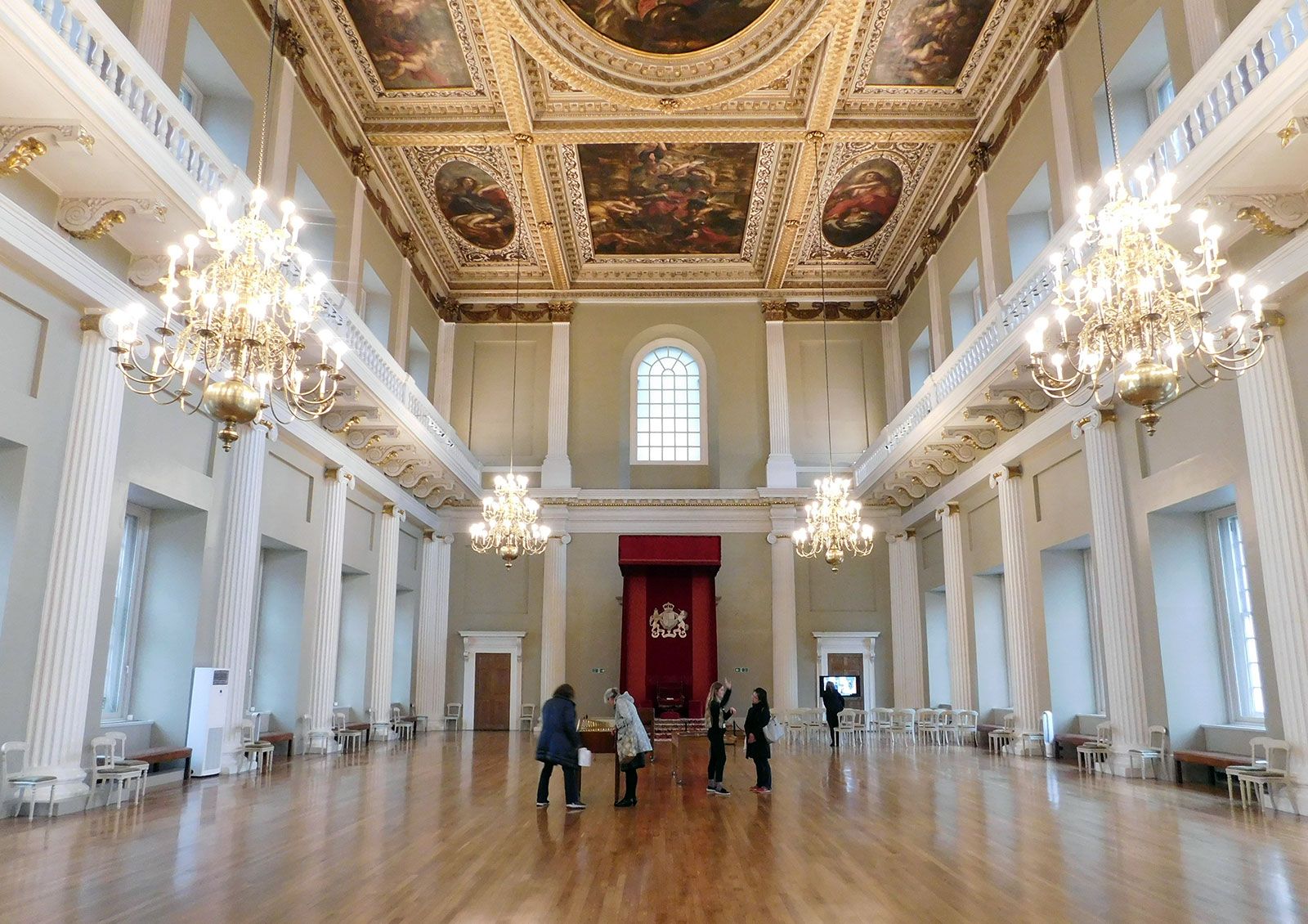 The State Dining Room of the White House seats only 120, in crowded but charming intimacy, the small size adding to the atmosphere of exclusivity. Still the idea that a larger banqueting hall would be a useful alternative to outdoor tents on the South Lawn strikes me as a sensible proposal. The challenge is to balance the need for seating capacity with the need for an appropriate size that suits its setting. Three times larger than the State Dining Room would be the capacity of Inigo Jones’s beautiful Banqueting House in London (above). The proposed White House ballroom (it is really a banqueting hall) was initially to have a capacity five times as large (600), but has grown to more than eight times as large (1,000). It is pretty obvious from the architect’s models that this is too big, and overwhelms the main residence in both height and footprint. My guess is that anything exceeding 600 seats would be too large for its setting. And what if rather than using the usual formula for calculating banquet seating in a hotel ballroom, the density were the same as the present State Dining Room? That would produce a hall with a footprint of approximately 65 feet by 130 feet. Even if this were slightly increased it would still be a manageable size, not much larger than the demolished East Wing.